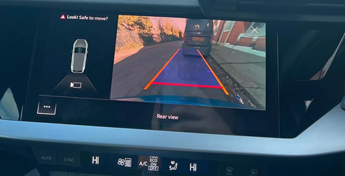 Perfect geïntegreerd in het OEM-systeem, met haarscherp beeld en dynamische hulplijnen.-